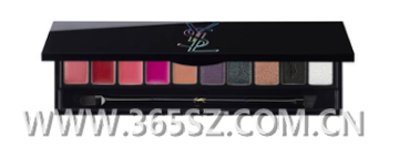 经典的Cassandra标志被70年代的绮丽所妆点,反射出霓虹光感的蓝、黄、粉,时尚感十足。打开YSL秋季限量彩盘的外壳,复古有型的颜色熠熠闪光,从唇到眼,一览无遗。彩盘左边共5种唇色,从豆沙色、珊瑚色,到玫红色、裸色,打造缎光、哑光、镜光的不同妆感。彩盘右边的5色眼影,既有金属质地的裸妆系,也有暗黑闪烁效果的摇滚系。无论是夜店舞池的耀眼妆容,还是摇滚明星的烟熏眼妆,任何造型都有了可能。另配有特殊设计的双头化妆刷:一头的棱形刷头便于描绘眼线、涂抹眼影;一头的圆润唇刷便于精准勾勒唇妆。